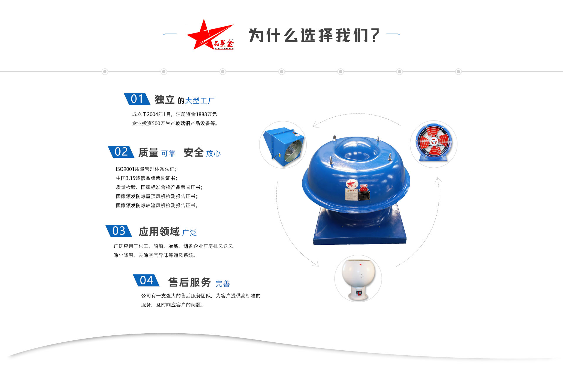 公司生產(chǎn)屋頂風(fēng)機(jī)、玻璃鋼防爆屋頂風(fēng)機(jī)、玻璃鋼防爆軸流風(fēng)機(jī)、玻璃鋼防爆邊墻風(fēng)機(jī)、防爆軸流風(fēng)機(jī)、玻璃鋼斜流風(fēng)機(jī) 、玻璃鋼離心風(fēng)機(jī) 、玻璃鋼防雷防爆電動(dòng)風(fēng)帽 、玻璃排氣扇 、玻璃鋼通風(fēng)器 、玻璃鋼防雨風(fēng)機(jī)帽 、玻璃鋼冷卻塔、新風(fēng)機(jī)組、風(fēng)機(jī)盤管、風(fēng)量調(diào)節(jié)閥、鋁合金風(fēng)口 、各種材質(zhì)通風(fēng)管道、等產(chǎn)品。